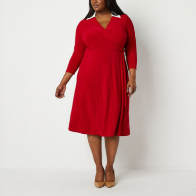 Source : blackbride.comBlack Label by Evan Picone Plus 3/4 Sleeve Midi Wrap Dress, Color